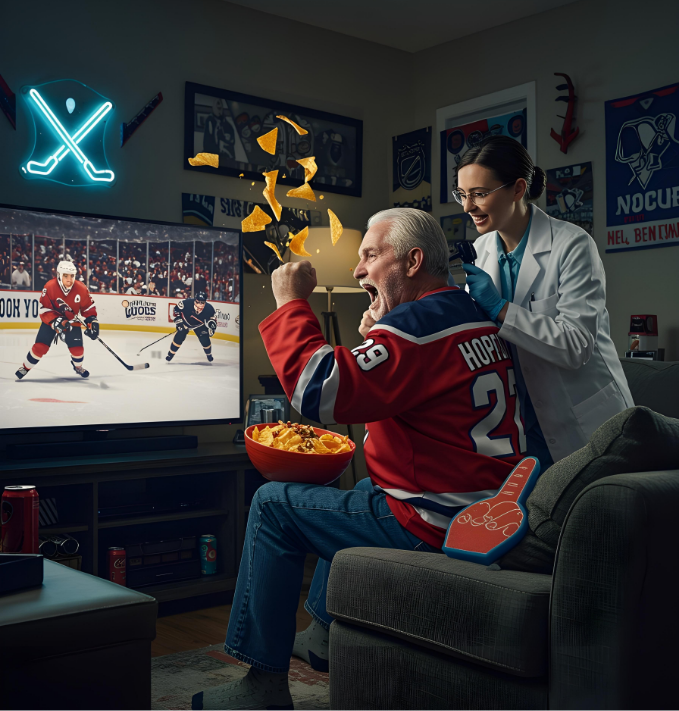 – A hockey-obsessed retiree mid-celebration